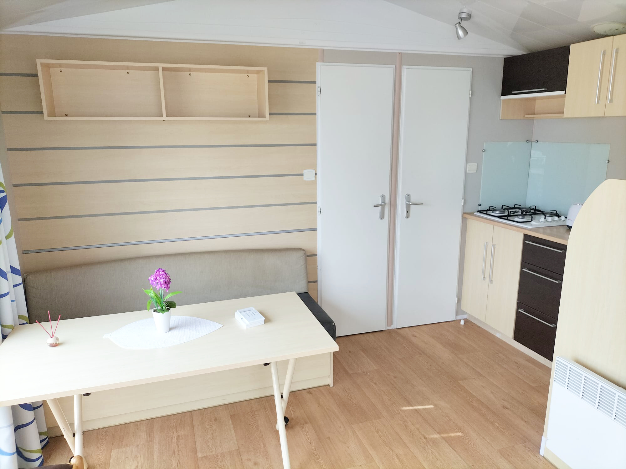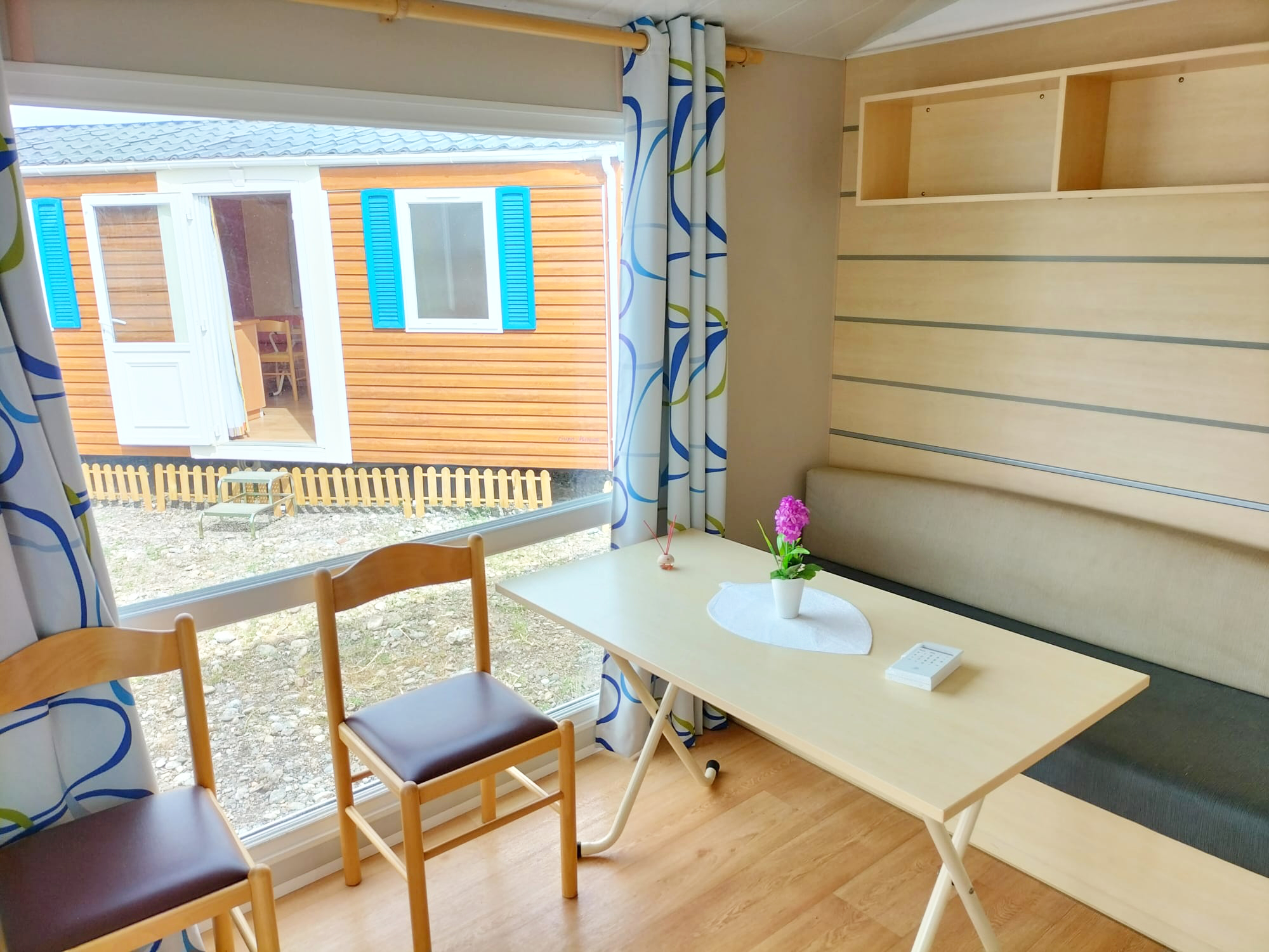 No necesitas preocuparte por comprar muebles adicionales. Esta casa móvil viene completamente amueblada.